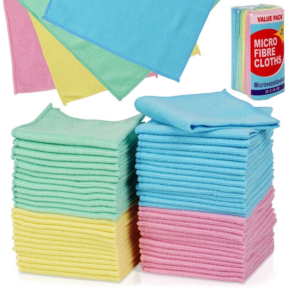 Az 50 darabos, pasztell színű készlet elegendő a konyhába, a fürdőbe és más helyiségekbe is. A kendők könnyen megkülönböztethetők feladat szerint.