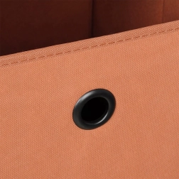 Összehajtható textil kosarak semleges színekben, fém szemmel a könnyű kihúzáshoz. Ideális ruhákhoz, játékokhoz vagy kiegészítőkhöz.