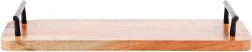 Ez a akácfából készült, téglalap alakú tálalódeszka ötvözi a funkcionalitást és a modern loft megjelenést. Két masszív fém fogantyú fekete színben biztosít stabil fogást és kényelmes hordozást italokhoz és ételekhez. A sima fa felület közvetlen tálalásra alkalmas, és könnyen tisztítható.