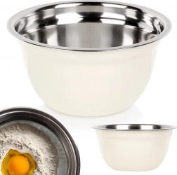 Ez a praktikus, minőségi rozsdamentes acél tál időtálló dizájnt ötvöz magas tartóssággal. A fehér külső felület elegáns hatást kelt, míg a polírozott belső könnyen tisztítható és higiénikus. A mély, lekerekített forma és a széles perem kényelmes keverést és kiöntést biztosít.