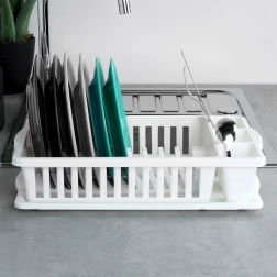 Tartsa a konyhát mindig szárazon és rendben mosogatás után. Ez a kompakt, klasszikus fehér edényszárító akár 10 tányért is elhelyez, és a külön rekeszeknek köszönhetően biztonságosan megszárítja az evőeszközöket és a kisebb konyhai eszközöket is. A kivehető csepegtetőtálca felfogja a felesleges vizet és leegyszerűsíti a tisztítást.
