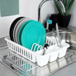 A tartós műanyag szerkezet könnyű, higiénikus és könnyen tisztítható. Időtálló dizájnja illik modern és hagyományos konyhákba, és gyors légáramlást biztosít a gyorsabb száradásért anélkül, hogy nedves nyomokat hagyna a munkalapon.