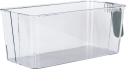 Praktikus átlátszó hűtőszervező 30 × 13 × 11,5 cm méretben, amely segít rendet tartani a hűtőben, és az élelmiszereket mindig kéznél tartja. Az integrált fogantyúnak köszönhetően könnyen kihúzható a polcokról, tartós, élelmiszerbiztonságos, és gyors vizuális ellenőrzést tesz lehetővé a tartalomról.