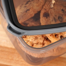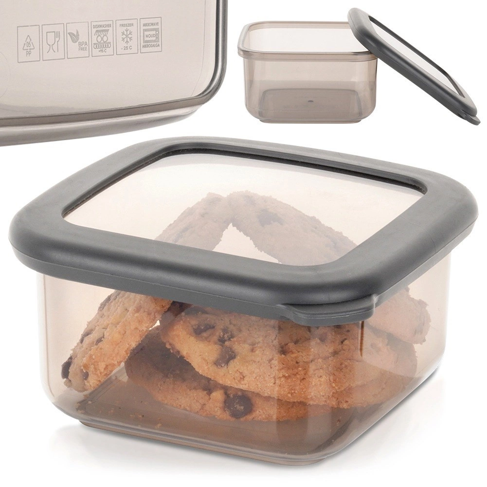 A fedél pontosan illeszkedik, és segít tovább frissen tartani az élelmiszereket. A doboz minőségi, tartós műanyagból készült modern szürke-átlátszó színben, élelmiszerrel érintkezve biztonságos, és mosogatógépben mosható. Több darab vásárlásakor könnyen egymásra rakhatók, így helyet takaríthat meg a szekrényekben.