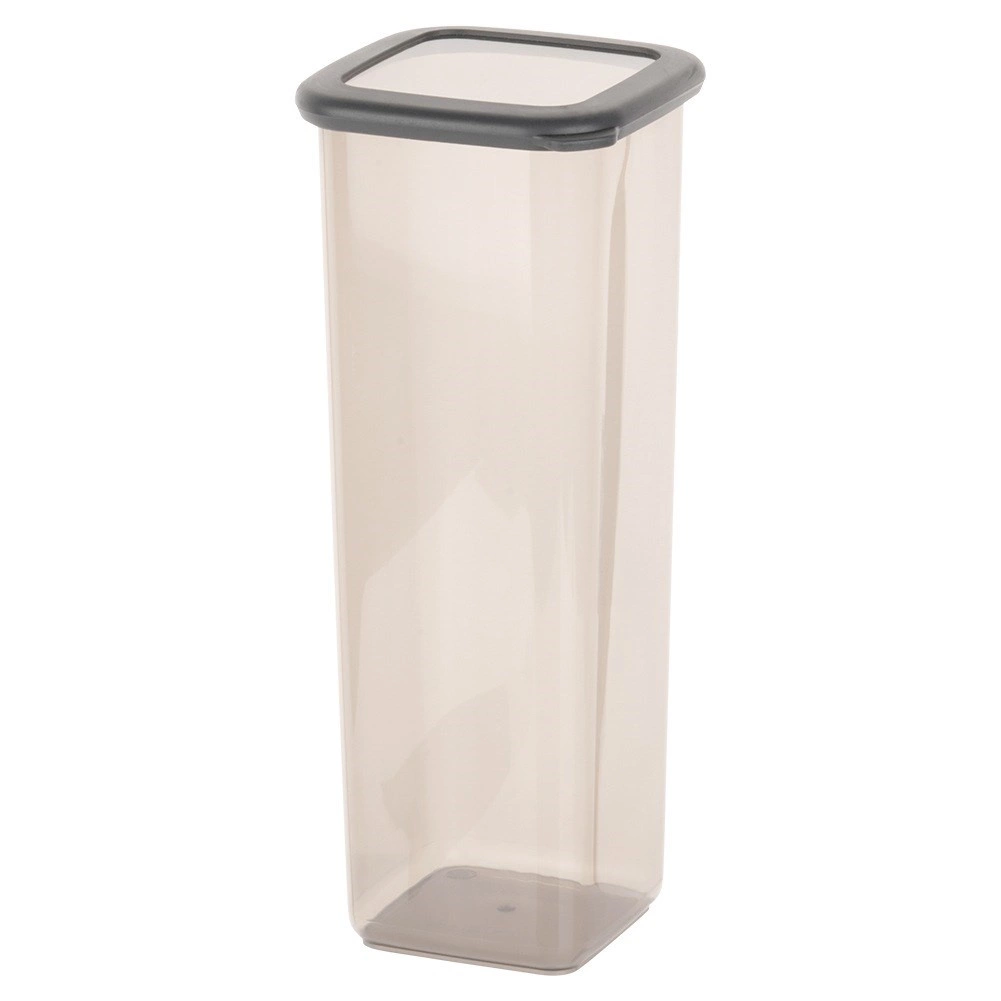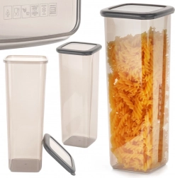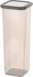 Rendezze okosan és stílusosan a kamráját. A 11 × 11 × 28 cm méretű, magas tároló akár 2 liter száraz élelmiszert is befogad, és a masszív, jól illeszkedő fedélnek köszönhetően segít megőrizni a frissességet és az aromát. A szürke tónusú, átlátszó testnek köszönhetően mindig azonnal látja, mennyi készlet maradt.