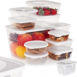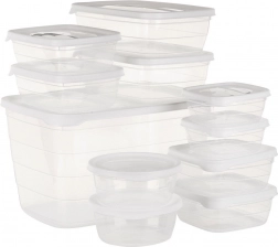 Praktikus készlet 11 db átlátszó dobozzal fehér tetővel a biztonságos élelmiszertároláshoz otthon és útközben. A légmentes zárás tovább frissen tartja az ételeket és megakadályozza a szagok kialakulását, a stócolható és egymásba rakható kialakítás helyet spórol. Alkalmas hűtőbe, fagyasztóba, mosogatógépbe, valamint mikrohullámú melegítéshez tető nélkül.