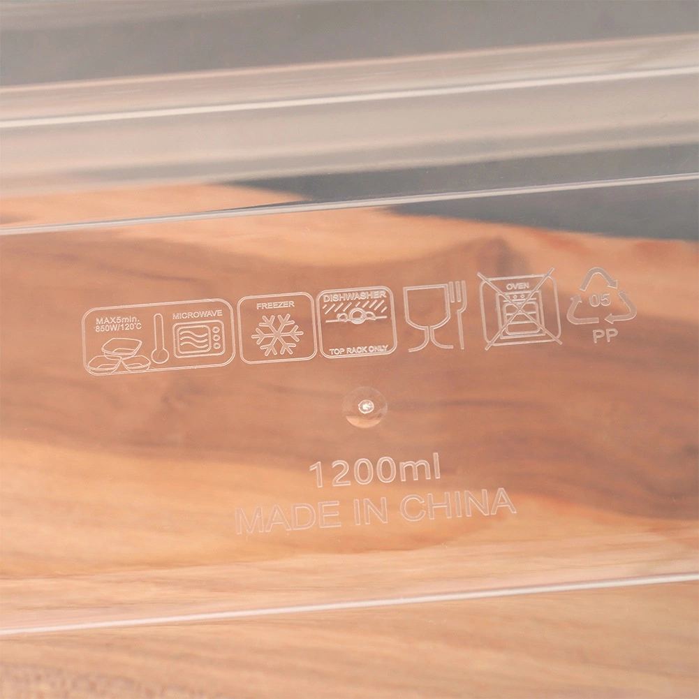 Az átlátszó, BPA-mentes műanyag tartós és mosogatógépben mosható. A doboz fagyasztóban használható, és a fedél nélkül mikrohullámú sütőben melegíthető.