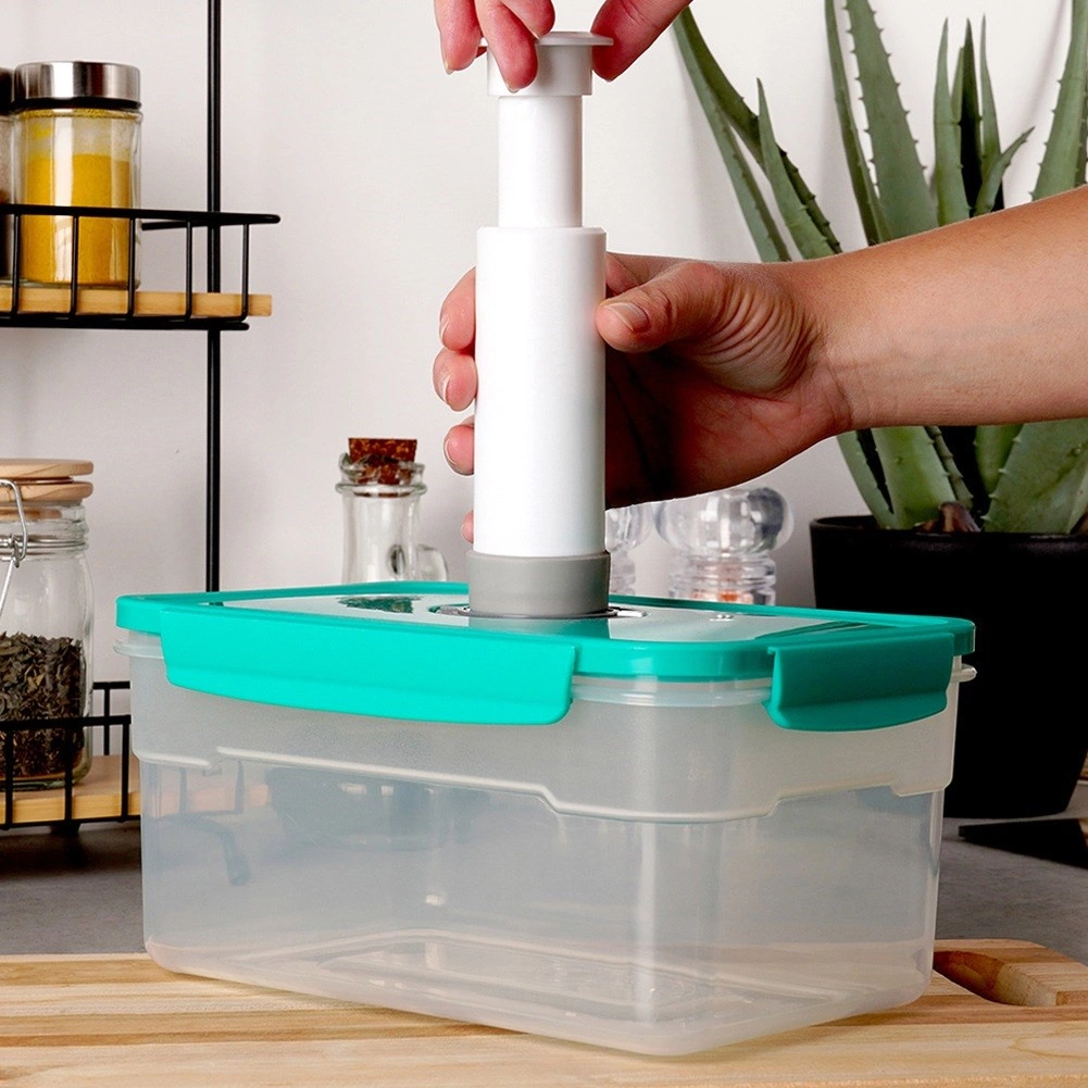 A praktikus vákuumpumpa ideális segítőtárs az otthoni élelmiszer-tároláshoz. A levegő kiszívásával az edényekből és tasakokból oxigénmentes környezetet hoz létre, amely lassítja a baktériumok és penész szaporodását, így jelentősen meghosszabbítja a szavatosságot, és megőrzi az ételek természetes ízét és illatát.