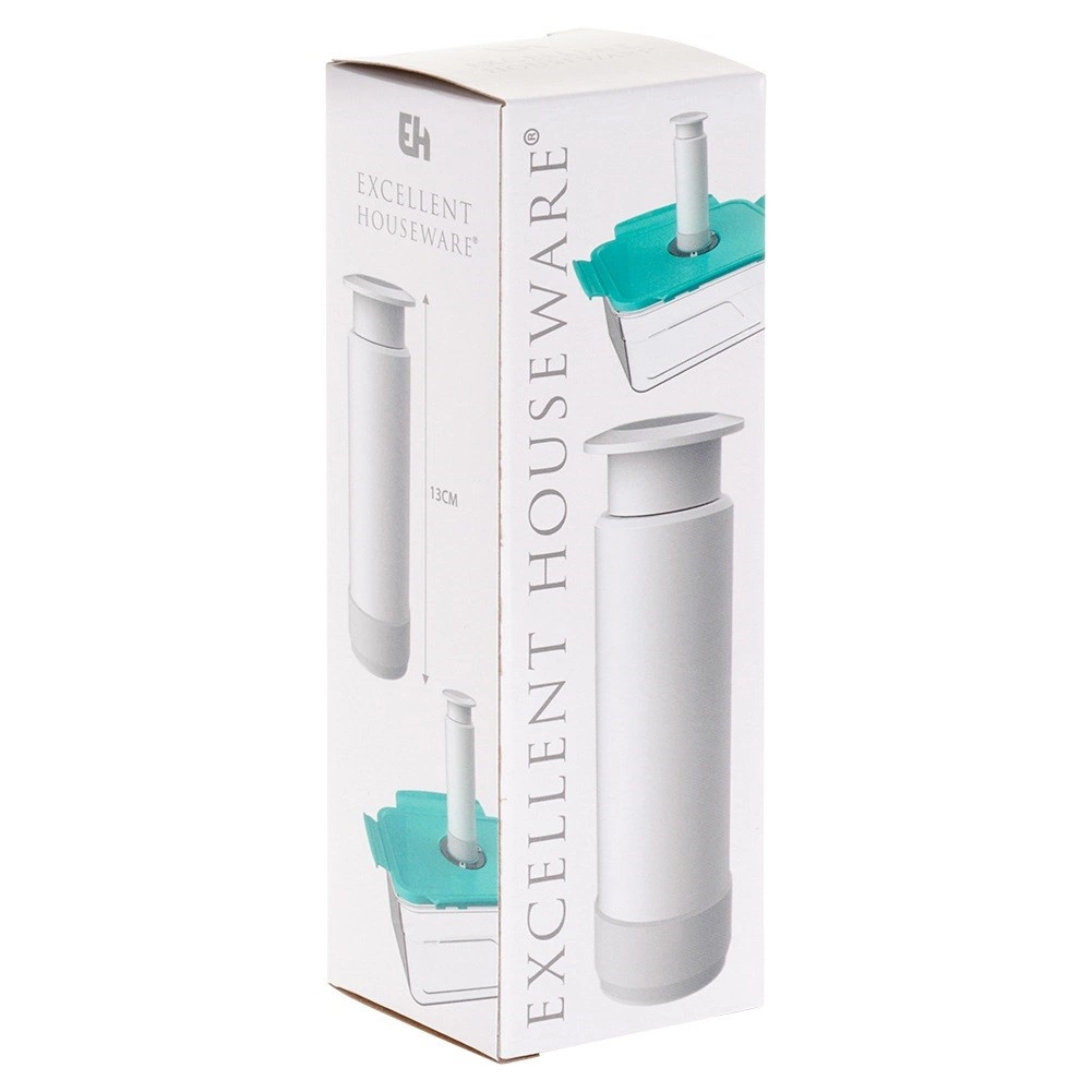 Kompakt kézi vákuumpumpa 13,5 cm hosszban a levegő gyors kiszívásához vákuumtasakokból és edényekből. A vákuumzár létrehozásával segít hosszabb ideig frissen tartani az ételeket, megőrizni a ízt, vitaminokat és tápanyagokat, és csökkenteni az élelmiszer-pazarlást. Könnyű, ergonomikus és könnyen kezelhető; a gumis talp szoros illeszkedést és stabilitást biztosít használat közben.