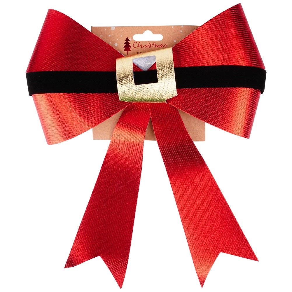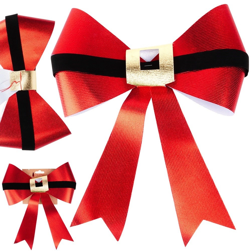 Varázslatos ünnepi hangulatot teremthetsz otthon és a munkahelyen egyaránt. Ez a nagy, fényes piros masni fekete „pánttal” és arany csattal a Mikulás övét idézi, így azonnal magára vonja a tekintetet, és kiemeli bármelyik bel- vagy kültéri teret.