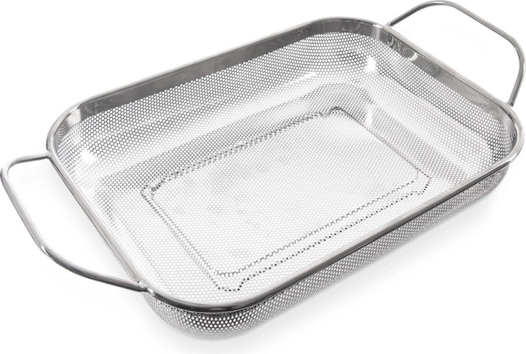 A kosár használható szűrőként a mosogató felett és grillkosárként is. A perforáció átengedi a hőt és a füstöt, az ételek pedig nem esnek át rajta.