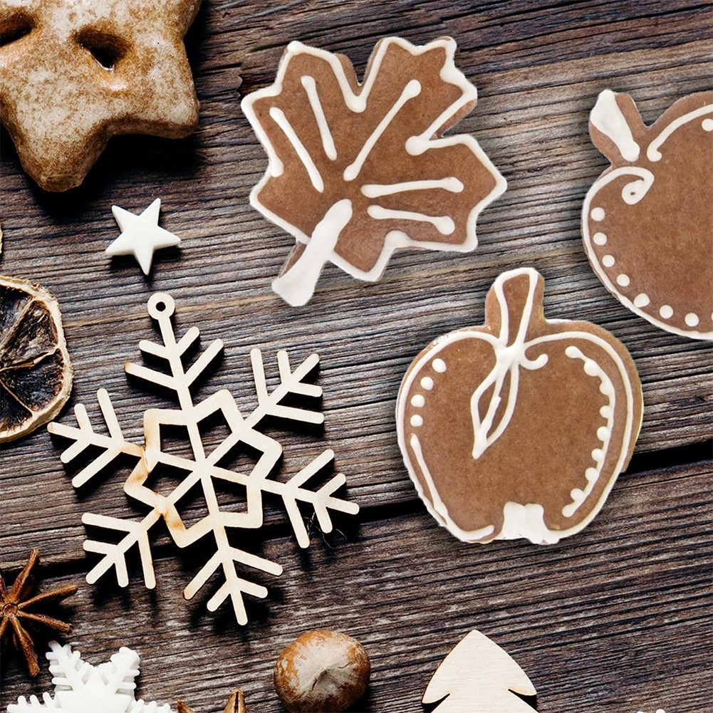 Alkoss őszi és karácsonyi motívumokat süteményekre és desszertekre – fehér mázzal különösen látványos.