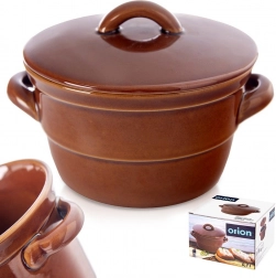 A hagyományos barna kivitelű, univerzális fedeles kerámiaedény remek segítőtárs a mindennapi konyhában. Az átlátszatlan, mázas kerámia segít stabil hőmérsékletet fenntartani, és ideális feltételeket teremt a fermentáláshoz és érleléshez, így az ételek megőrzik ízüket és minőségüket.