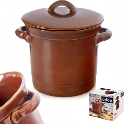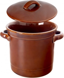 Praktikus, 1 literes kerámia edény fedővel és fülekkel, ideális erjesztéshez, pácoláshoz és élelmiszerek tárolásához. A nem áteresztő máz segít megőrizni az állandó hőmérsékletet és az ízt, a fedő pedig jobb zárást és higiéniát biztosít. Mosogatógépben, mikrohullámú sütőben és 200 °C-ig sütőben is használható.