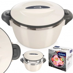 Élvezze a házi ételeket ideális hőmérsékleten bárhol. A 900 ml-es ORION termo tál dupla falú kialakítású, rozsdamentes acél belsővel és strapabíró, gyöngyház krém színű műanyag külsővel. A minőségi szigetelésnek köszönhetően az ételek tovább maradnak melegek vagy hidegek; a hőtartás ideje a környezeti hőmérséklettől és a hőmérséklet-különbségtől függ.