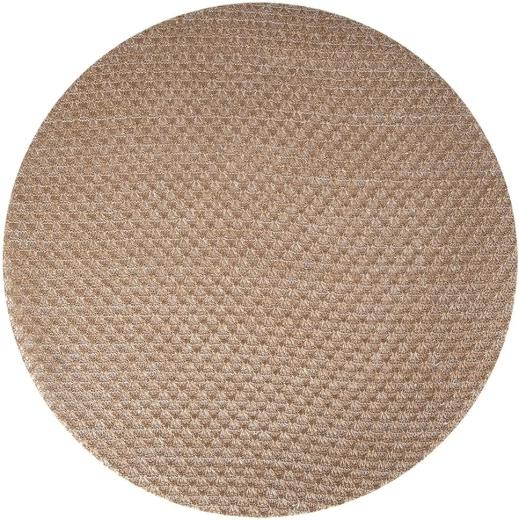 Elegáns, 38 cm átmérőjű kerek alátét bézs színben, aranyszállal átszőve, amely stílust és védelmet ad az asztalának. Remekül mutat tányérok, csészék vagy poharak alatt, és egyben megvédi az asztallapot a szennyeződésektől és a karcolásoktól. Univerzális kialakítása bármilyen enteriőrhöz illik.