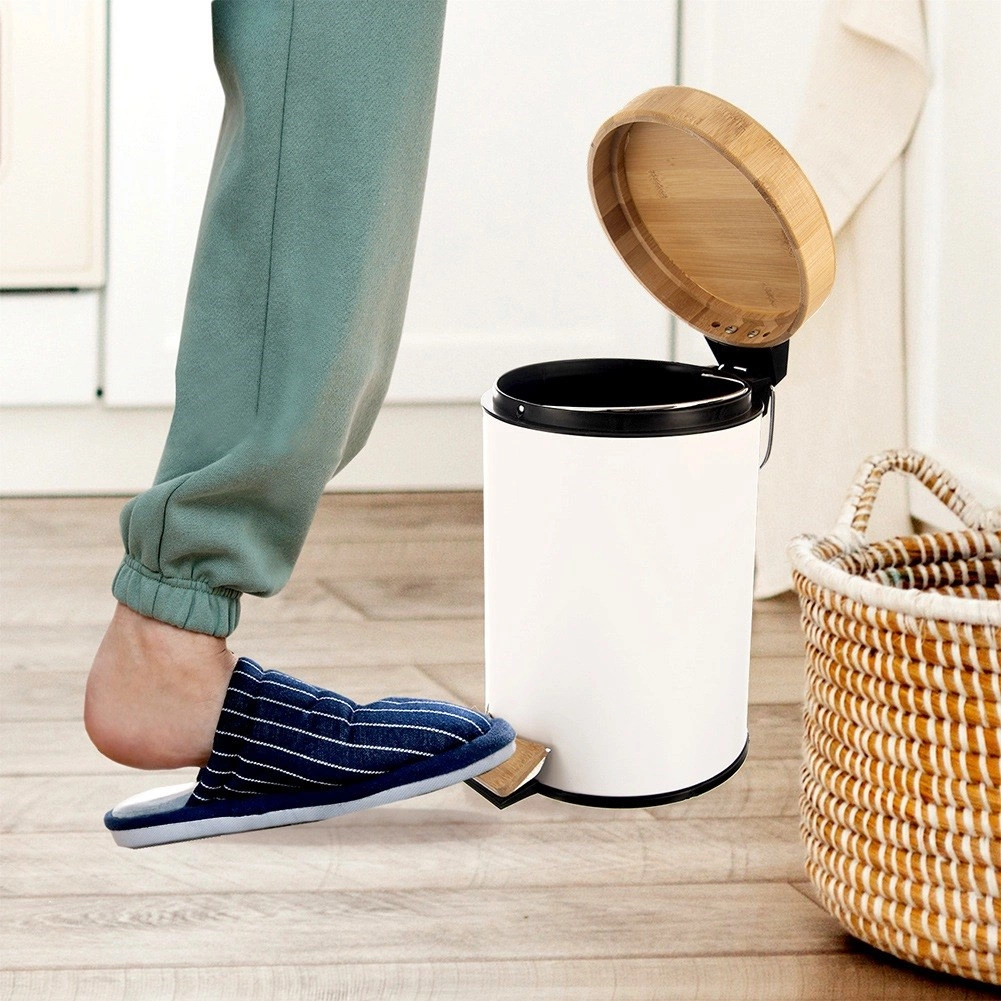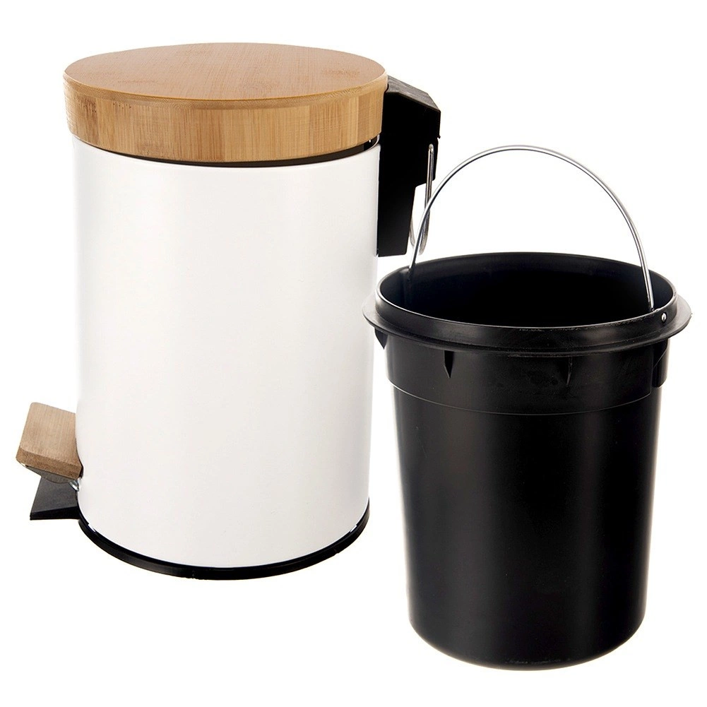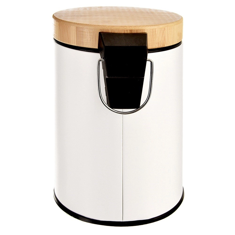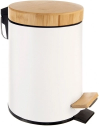 Kompakt, 3 l űrtartalmú szemetes elegáns fehér kivitelben, bambusz fedéllel és pedállal – tökéletes a fürdőszobába, irodába vagy hálószobába. Csendes és higiénikus, lábpedállal történő nyitás, kivehető belső betét az egyszerű ürítéshez, valamint modern, minimalista dizájn bármilyen környezetbe.