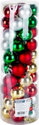 Varázslatos ünnepi hangulatot teremthet otthonában ezzel az univerzális, 50 darabos karácsonyi gömbszettel. A műanyag kivitel rendkívül ellenálló a töréssel szemben, ezért a díszek biztonságosak és praktikusak gyermekes családokban és kisállat-tartóknál is. A fényes és matt felületek kombinációjának, valamint a közkedvelt színeknek köszönhetően könnyen illeszthető modern és hagyományos dekorációkhoz egyaránt.