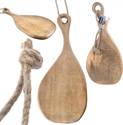 A ergonomikus fogantyúnak köszönhetően a deszka kényelmesen hordozható, a zsinórral ellátott nyílás könnyű felakasztást és helytakarékos tárolást biztosít. A sima, finoman csiszolt felület védi a munkalapot a karcolásoktól, és kiemeli a fa természetes textúráját.