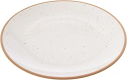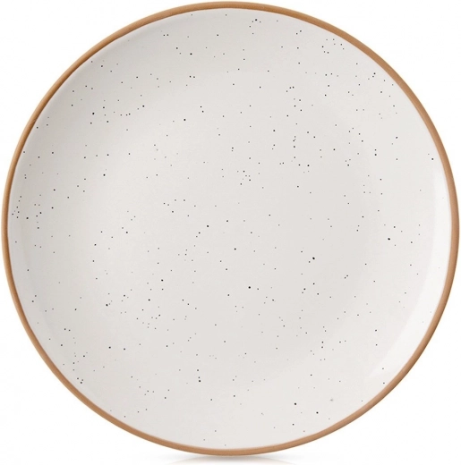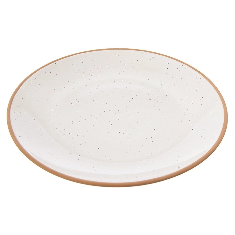 Az elegáns, 20 cm átmérőjű kerámia tányér pettyezett mázzal és kontrasztos, természetes hatású peremmel tűnik ki. Univerzális formájának és sima felületének köszönhetően kiváló a mindennapi használathoz és az ünnepi terítékhez egyaránt. Minimalista megjelenése könnyen kombinálható más étkészlet-darabokkal.
