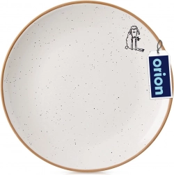 Stílusos, 20 cm átmérőjű kerámia desszertes tányér modern, bézs mázzal, finoman pöttyözött hatással és természetes kőedény peremmel. Minőségi kivitelezésének köszönhetően tartós, praktikus, és szépen kiegészít bármilyen étkészletet.