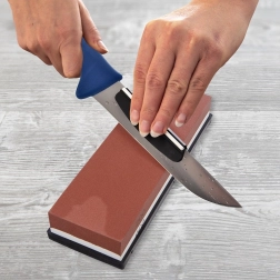 A csúszásgátló szilikon talp biztos alátámasztást nyújt. Alkalmas konyhakésekhez, ollókhoz, vésőkhez és kerti szerszámokhoz is.