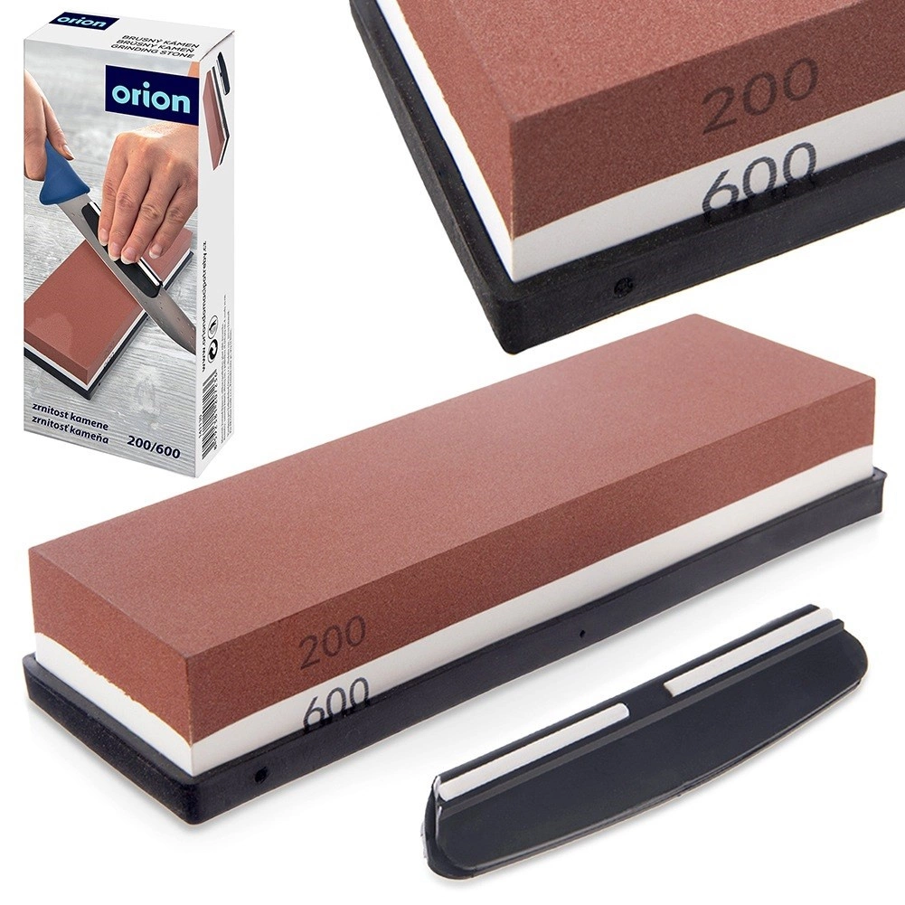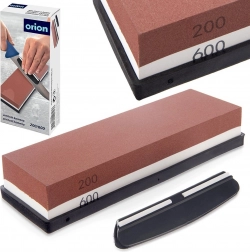 Univerzális, kétrétegű fenőkő tartós korundból, amely megbirkózik a konyhakések, ollók, vésők és kerti szerszámok élezésével. A 200-as szemcse gyorsan helyreállítja az élt, a 600-as finomítja és polírozza. Tartozék a vezető klipsz (15–20°) a következetes szögért és a penge biztonságos vezetéséért.