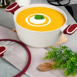 Ideális levesekhez, pároláshoz és egyserpenyős ételekhez. A üvegfedő szeleppel lehetővé teszi a főzés felügyeletét, míg a puha, hőálló fogantyúk biztonságos fogást adnak. Úgy tervezték, hogy ellenálljon a hirtelen hőmérséklet‑változásoknak, és tálaláskor is remekül mutat az asztalon.