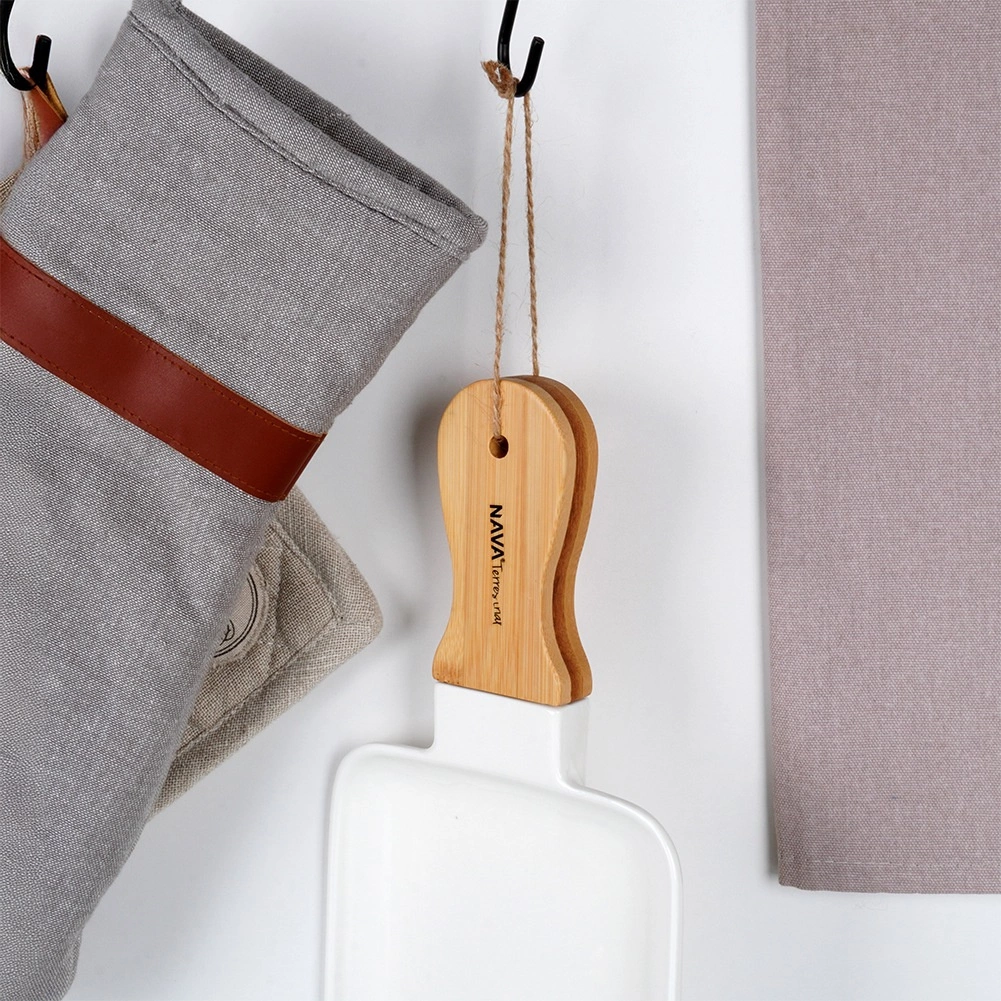 Az integrált bambusz nyél szemmel és zsinórral biztos fogást nyújt hordozáskor, és lehetővé teszi a praktikus felakasztást használat után.
