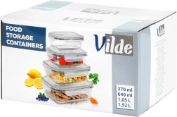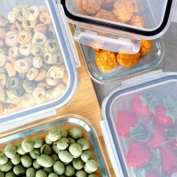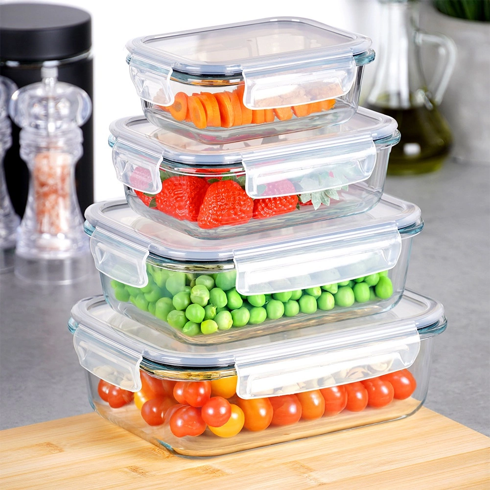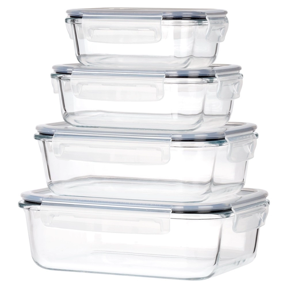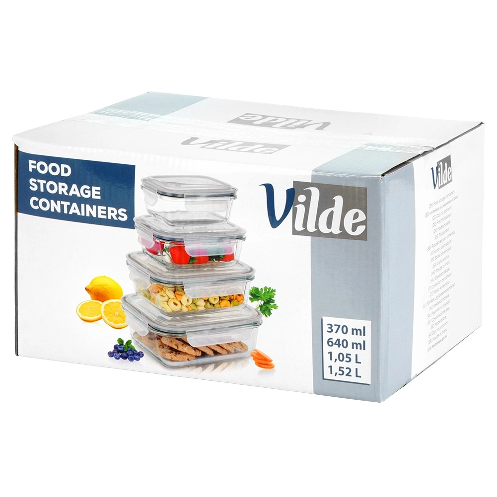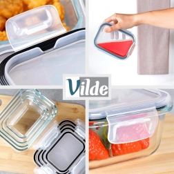 Négy darab boroszilikát üvegből készült ételtároló doboz légmentesen záródó fedelekkel és négy klippel a biztonságos záráshoz, hogy az étele tovább friss maradjon. A különböző méreteknek és az egymásba helyezhető kialakításnak köszönhetően helytakarékosak, így ideálisak hűtőszekrénybe, fagyasztóba, mikrohullámú sütőbe és sütőbe is. Légmentes zárás, tartós boroszilikát üveg, használható sütőben és mikrohullámú sütőben (fedél nélkül), valamint könnyű tisztítás mosogatógépben.