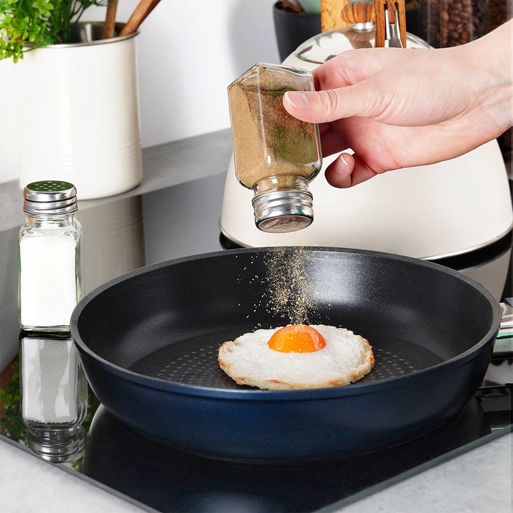 A perforált fém fedelek egyenletes szórást és mennyiségkontrollt biztosítanak – ideális sóhoz, borshoz és finomra őrölt fűszerekhez.