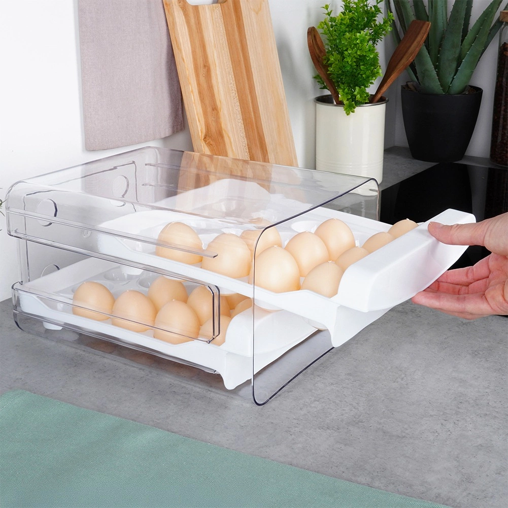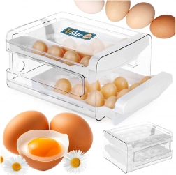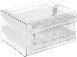 A praktikus, kétszintes tojásrendező akár 40 tojást is befogad, és áttekintetten rendezetten, ütődés ellen védetten tartja őket, mindig kéznél. A kihúzható fiókoknak köszönhetően a kivétel és az utántöltés is egyszerű, az átlátszó falak azonnali készletellenőrzést tesznek lehetővé, a kompakt méretek pedig helyet spórolnak a hűtőben.