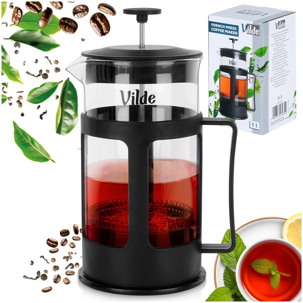 Az elegáns VILDE french press a kézi készítés egyszerűségét kristálytiszta ízzel ötvözi. A boroszilikát üvegből készült kanna ellenáll a hősokknak, míg a finom szűrővel ellátott rozsdamentes acél dugattyú a legapróbb részecskéket is visszatartja a kristálytiszta italért. Az ergonomikus fül és a pontos kiöntőcsőr megkönnyíti a szervírozást otthon és a vendéglátásban.