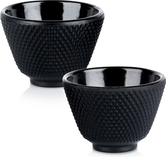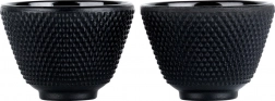 Elegáns, két darabos, 60 ml-es teáscsésze-készlet minőségi öntöttvasból, zománcozott belsővel. Kiválóan tartják a hőt, nem szívják magukba a szagokat, és könnyen tisztíthatók. A texturált felületnek köszönhetően kényelmes a fogás, és a japán teaszertartás hagyományát idézik. Ideális tea, gyógynövényes infúziók és espresso számára.