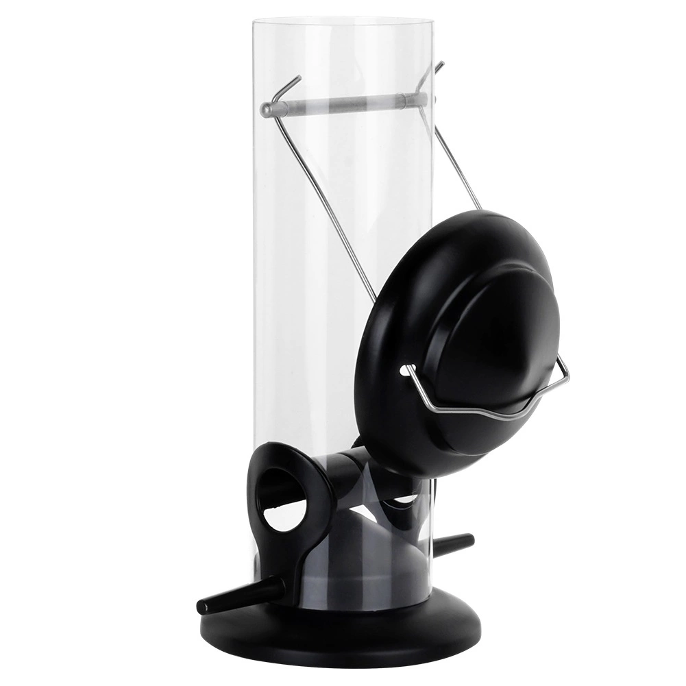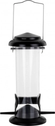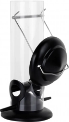Praktikus, függesztett madáretető átlátszó tartállyal és fekete színű fém alappal. Kínál kényelmes felakasztást, egyszerű utántöltést és tisztítást a felnyitható fedélnek köszönhetően, valamint több etetőnyílást ülőkékkel a magok kényelmes eléréséhez. Ideális egész éves etetéshez kertbe, teraszra és erkélyre.