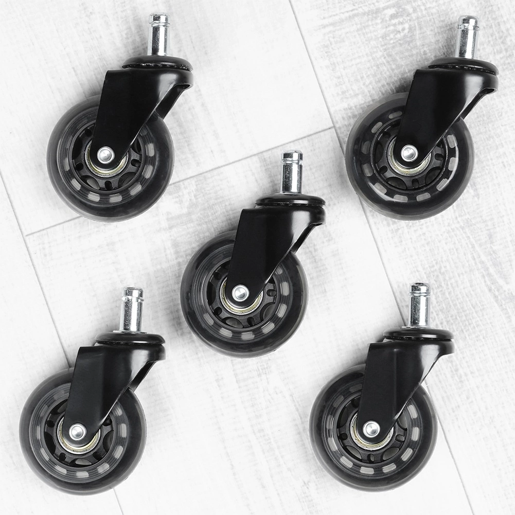 A gumírozott felület segít megóvni a padlót a karcolásoktól és a felesleges kopástól, akár irodában, akár otthon. A csere pillanatok alatt elvégezhető – a görgőket egyszerűen a szék csillagába kell bepattintani, szerszám használata nélkül.