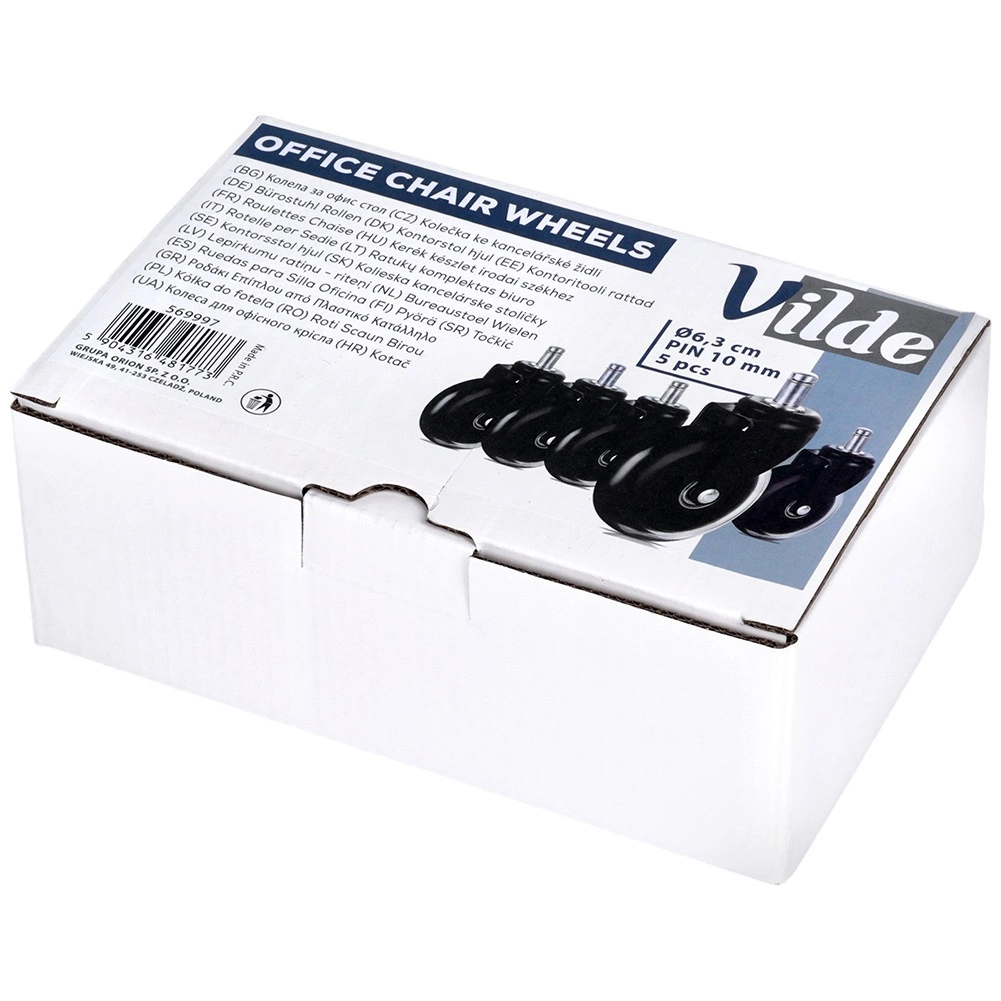 Pót készlet öt darab irodai székgörgőhöz 63 mm átmérővel és 10 mm-es csappal. Biztosítják a csendes, egyenletes gördülést, a padló védelmét a karcolásoktól, valamint a szerszám nélküli, egyszerű szerelést. Számos székkel kompatibilis, beleértve az azonos rögzítési méretű, kiválasztott IKEA modelleket is.
