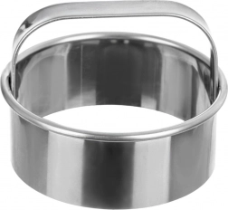 Praktikus, 6 cm átmérőjű rozsdamentes szaggató kényelmes fogantyúval a pontos és gyors kiszúráshoz. Ideális sütikhez, derelyéhez, fánkokhoz és mézeskalácshoz. Minőségi rozsdamentes acélból készült, strapabíró, könnyen tisztítható és mosogatógépben mosható.
