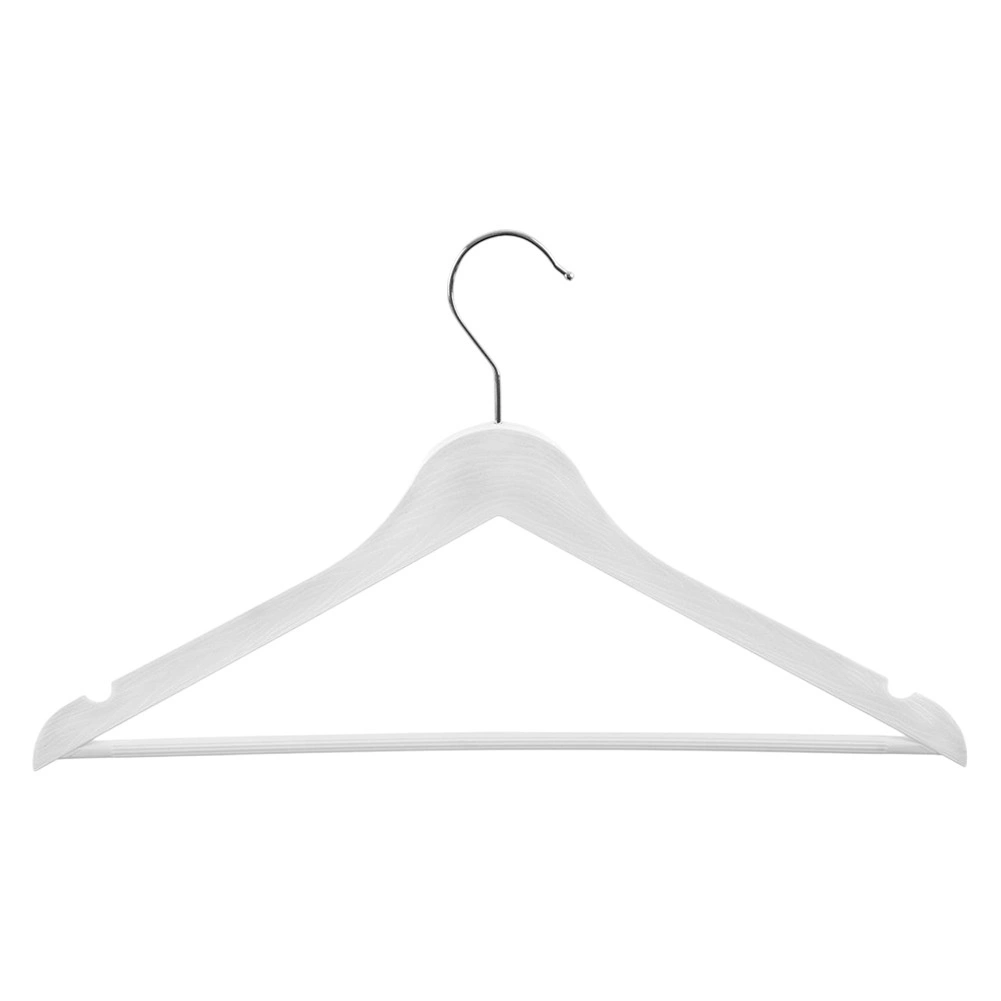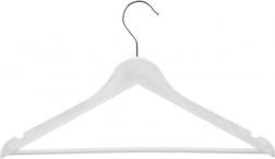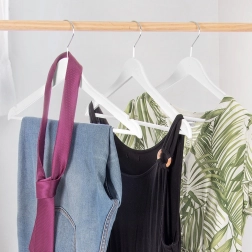Bevágások ruhákhoz és pántos felsőkhöz, keresztirányú rúd nadrágokhoz vagy kiegészítőkhöz – egyetlen vállfa többféle ruhadarabhoz.