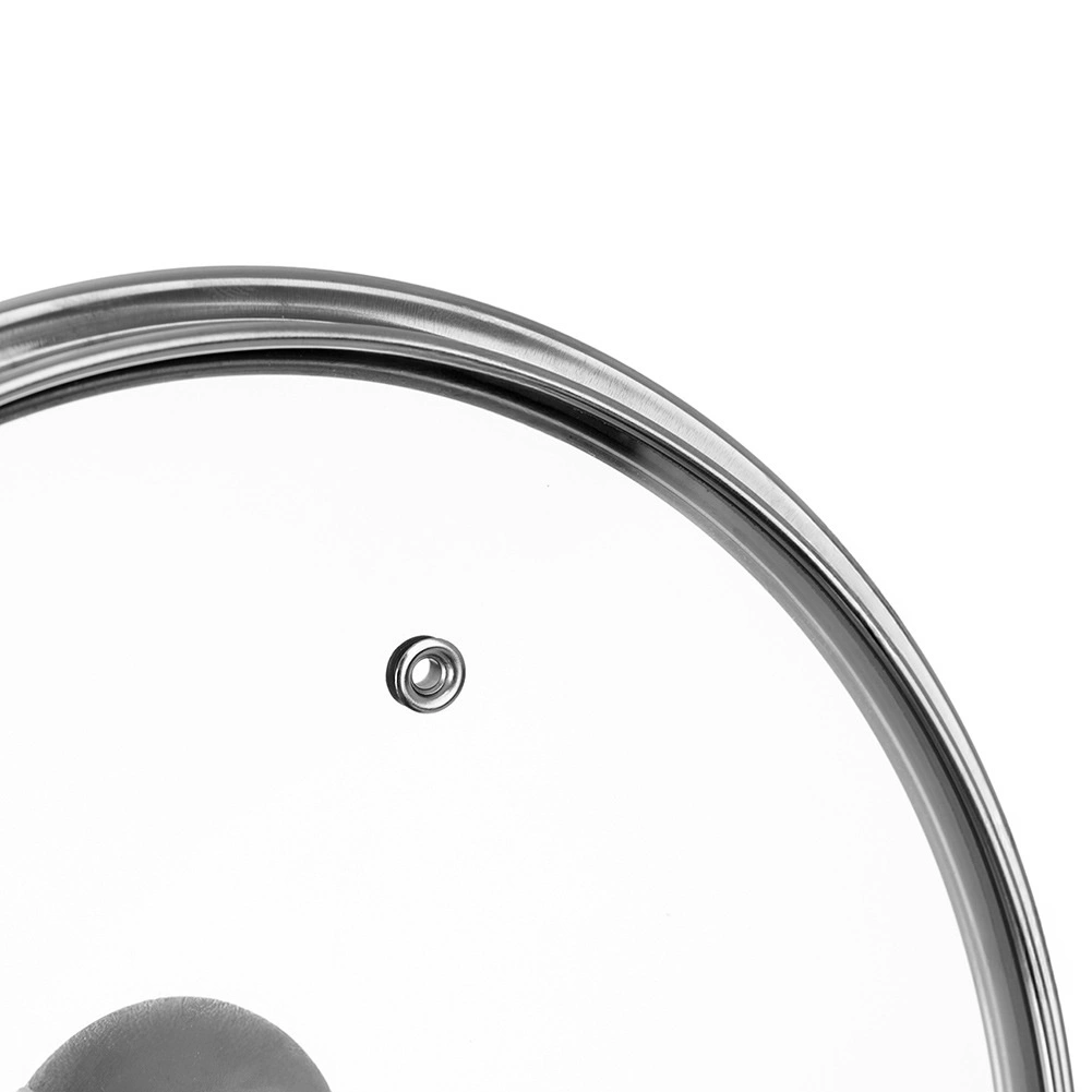 A tartós rozsdamentes acél szegély és a magas perem stabilitást, hosszú élettartamot és szoros illeszkedést biztosít az edényhez.
