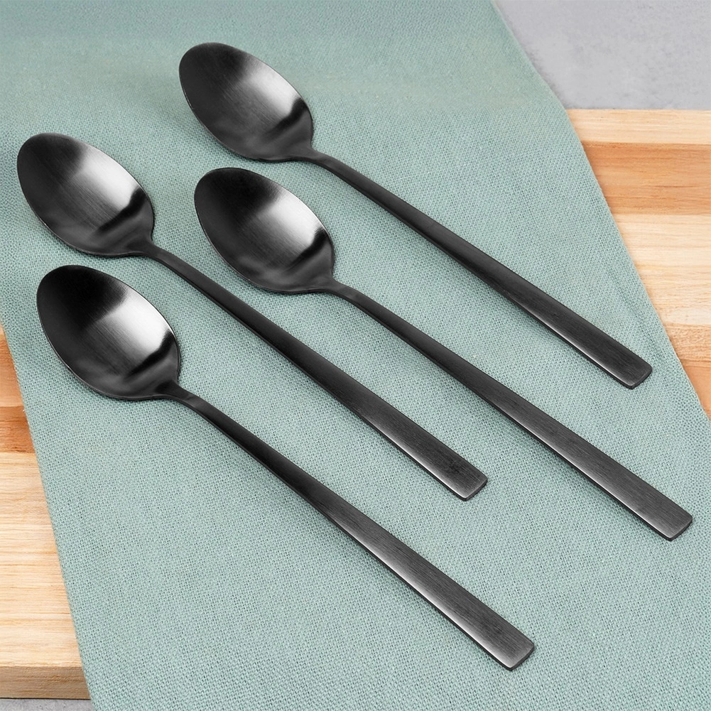 Fedezze fel ezeket az elegáns és praktikus koktélkanalakat, amelyek hosszabbított nyelüknek köszönhetően kényelmesen elérnek a magas poharak aljáig. A matt fekete, szatén kivitel modern hatást kölcsönöz az asztalnak, és jól illik mind a klasszikus, mind a minimalista környezethez.