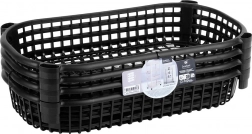 Rácsos kosarak biztosítják a levegőáramlást és az átláthatóságot. A könnyű, mégis erős, fekete anyag könnyen tisztítható.
