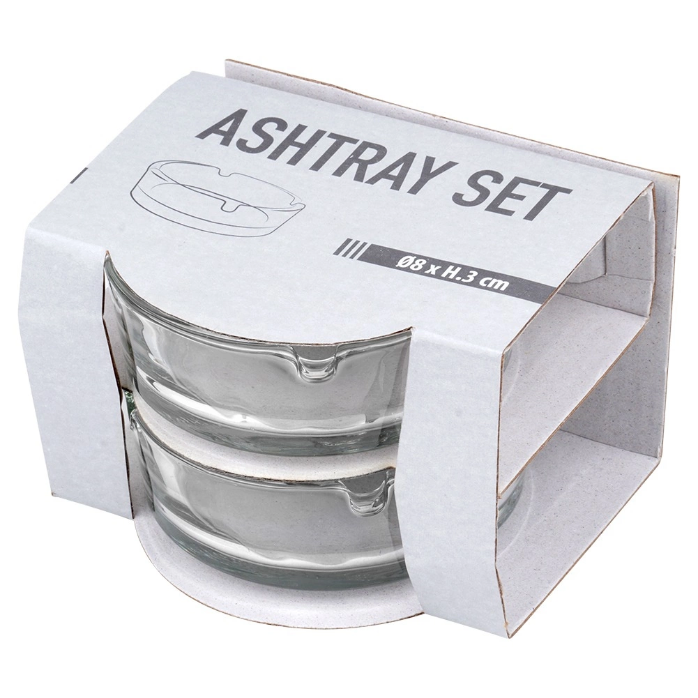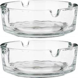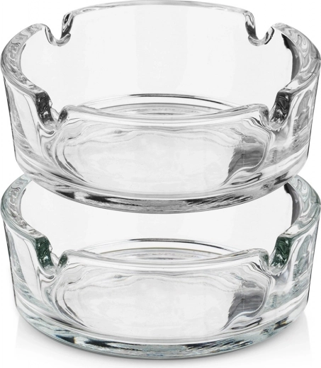 Praktikus, két darabos üveg hamutartó készlet 8 cm átmérővel és 3 cm magassággal, mindennapi használatra otthon és kültéren. A kompakt méreteknek, a strapabíró, vastag falú üvegnek és a klasszikus dizájnnak köszönhetően ideális erkélyre, teraszra, kertbe, valamint éttermekbe, bárokba és szállodákba. Minden hamutartón 4 bevágás található a cigaretta kényelmes lerakásához, és könnyen tisztítható.