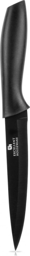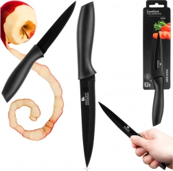 Fedezze fel a megbízható konyhakést, amely precíz szeletelést, fűszernövények aprítását és hús előkészítését is gond nélkül kezeli. A rozsdamentes acél penge fekete, matt felülettel sima vágást és korrózióállóságot biztosít. Az ergonomikus markolat kényelmes és biztos tartást nyújt hosszabb konyhai munka során is.