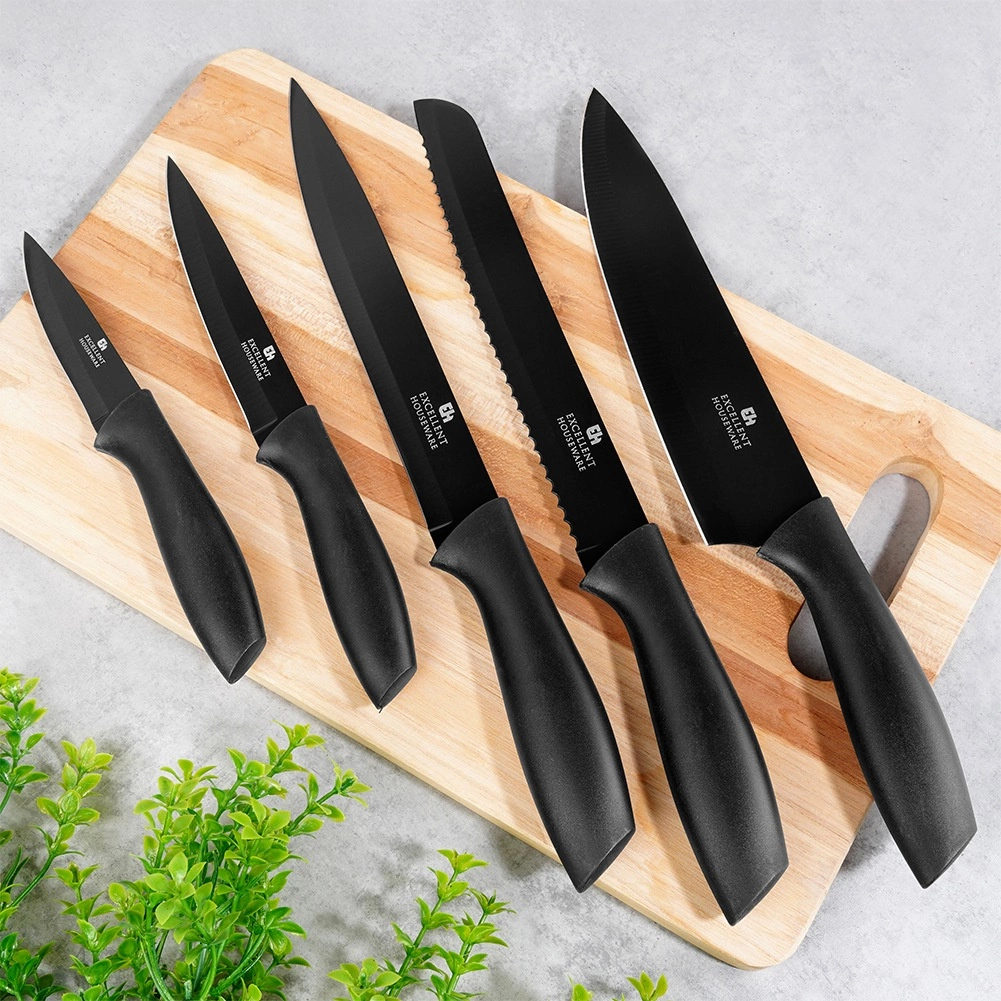 Minőségi rozsdamentes acél matt fekete felülettel a tiszta vágásért, fokozott korrózióállóságért és könnyű tisztításért.