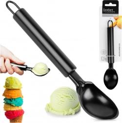 Praktikus fagylaltadagoló tartós rozsdamentes acélból, elegáns matt fekete színben, 19 cm hosszúságban. A mély fej segítségével könnyedén készíthet egyenletes gombócokat, a masszív kialakítás pedig a keményebb fagylalt felszedését is megkönnyíti. Ergonomikus markolat akasztófüllel és mosogatógépben mosható kivitel, ideális eszköz minden konyhába.