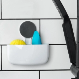 A nyitott forma lekerekített felső peremmel könnyű hozzáférést biztosít a szivacshoz, keféhez vagy kozmetikumokhoz közvetlenül a zuhany alatt.