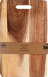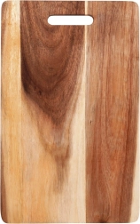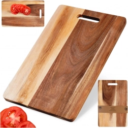 A téglalap alakú, minőségi akácfából készült deszka nagyfokú tartósságot, stabilitást és hosszú élettartamot biztosít. A gyönyörű erezetű természetes felület kíméletes a késekhez, az 1,5 cm-es vastagság pedig jól csillapítja a vágás közbeni ütéseket. A praktikus fogantyú kényelmes hordozást és felakasztást tesz lehetővé.
