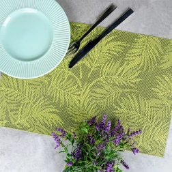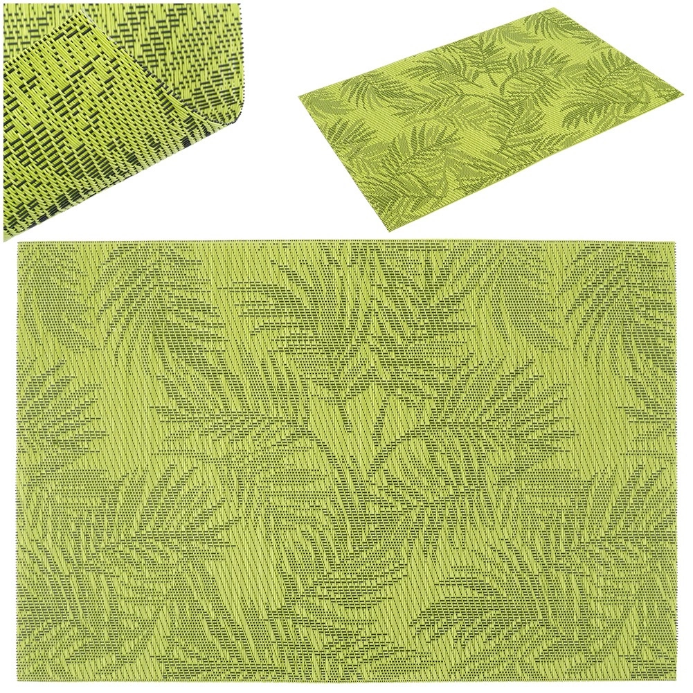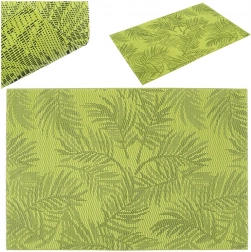 Ez a stílusos, zöld árnyalatú alátét látványos trópusi levélmintával ideális a mindennapi étkezésekhez és ünnepi alkalmakhoz egyaránt. A praktikus 45 × 30 cm méretnek köszönhetően tökéletesen illik a tányérok alá, és megóvja az asztallapot a hőtől, foltoktól és kopástól.