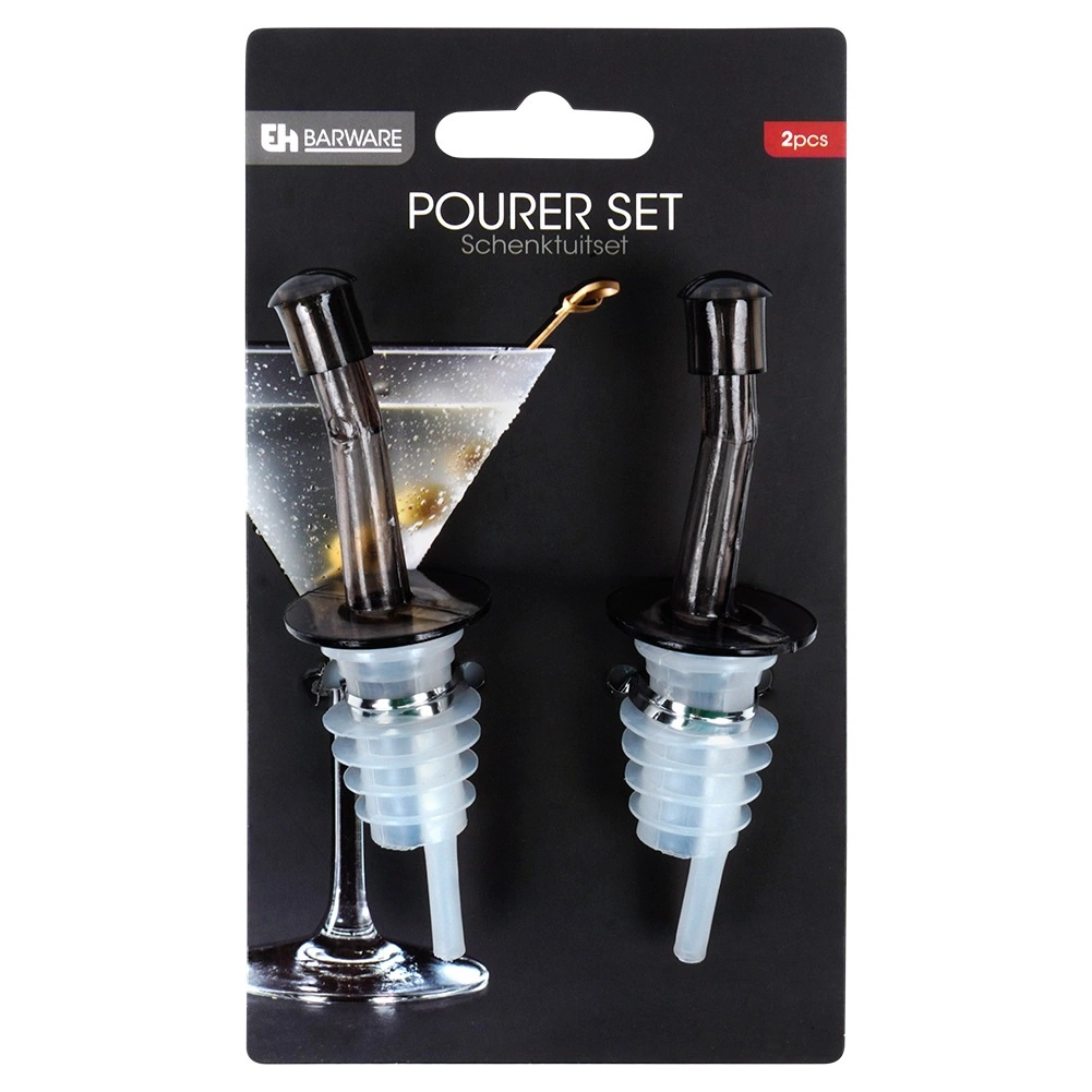 Praktikus, két darabból álló öntőfej-készlet a kényelmes és pontos adagoláshoz olajhoz, ecethez, szirupokhoz és szeszes italokhoz, csöpögés és pazarlás nélkül. Univerzális kompatibilitás a legtöbb palackkal, zárókupakok a tartalom védelmére és könnyű karbantartás a mindennapi használathoz a konyhában és az otthoni bárban.